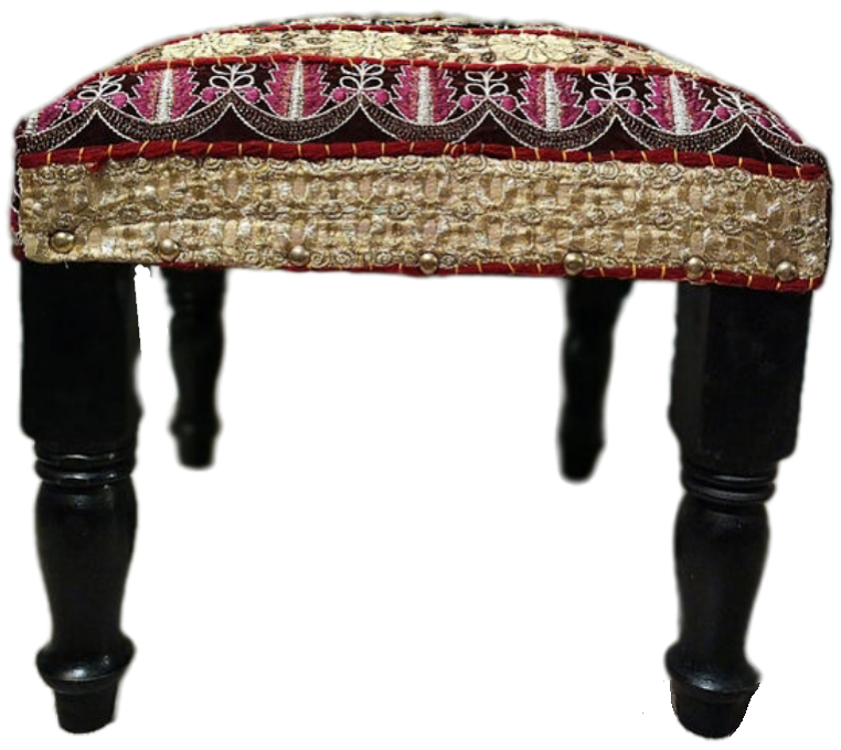 Embroidered Patchwork Footrest Crafted of Mango Wood