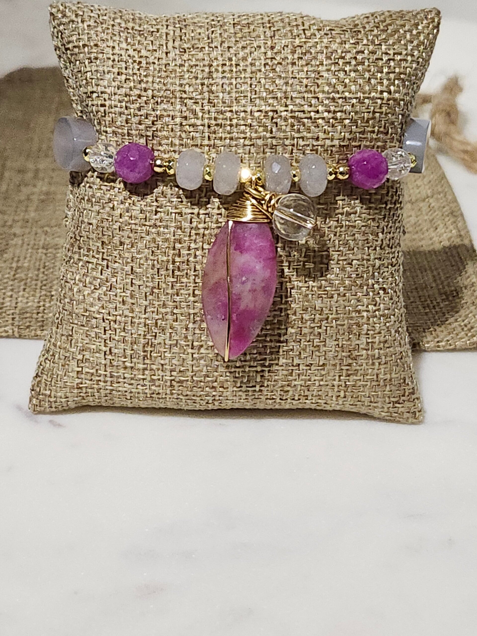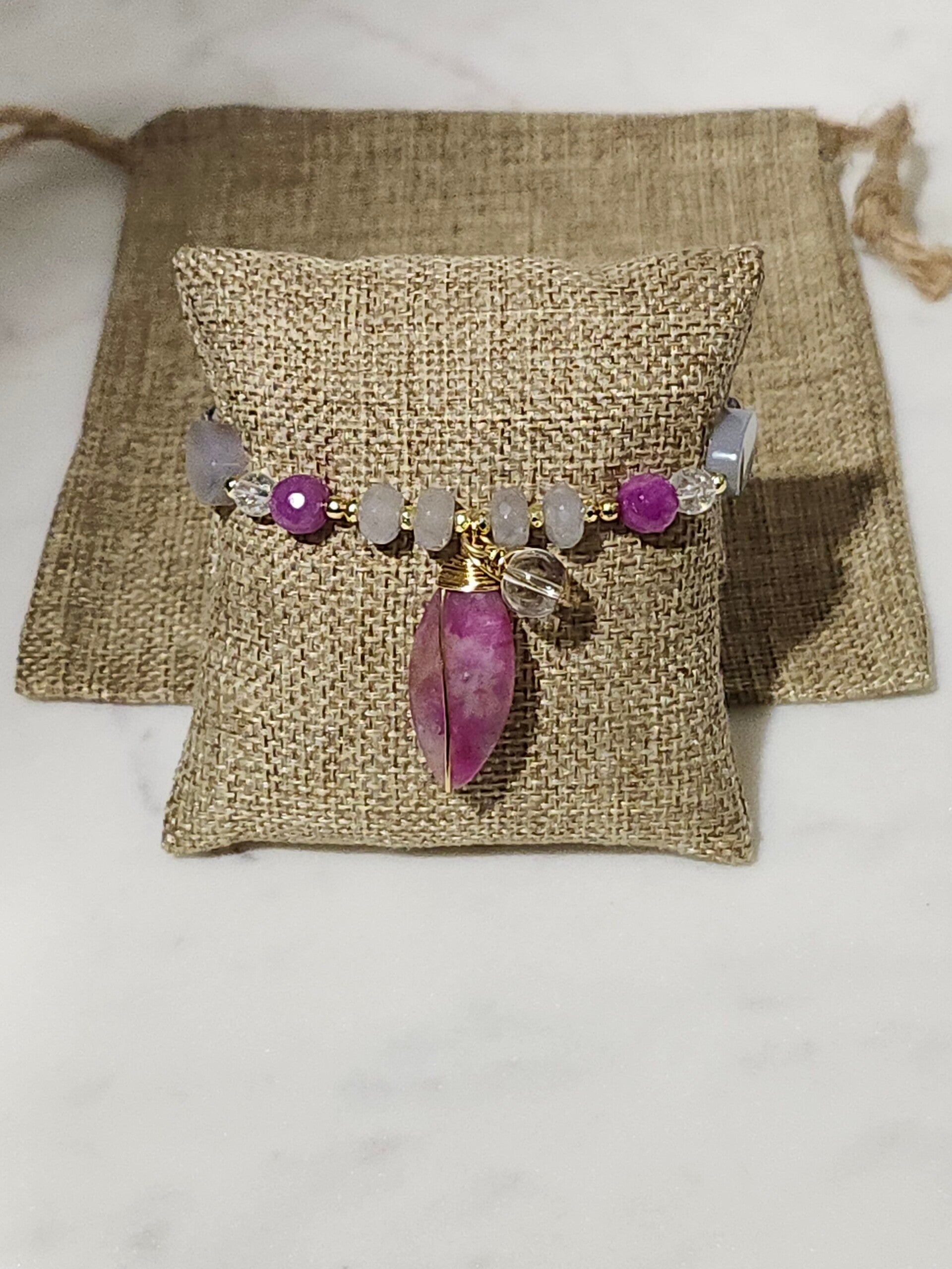 Handcrafted Gemstone Bracelet (Jasper, Sugilite, Jade, Agate, crackled Quartz & gold tone Hematite)