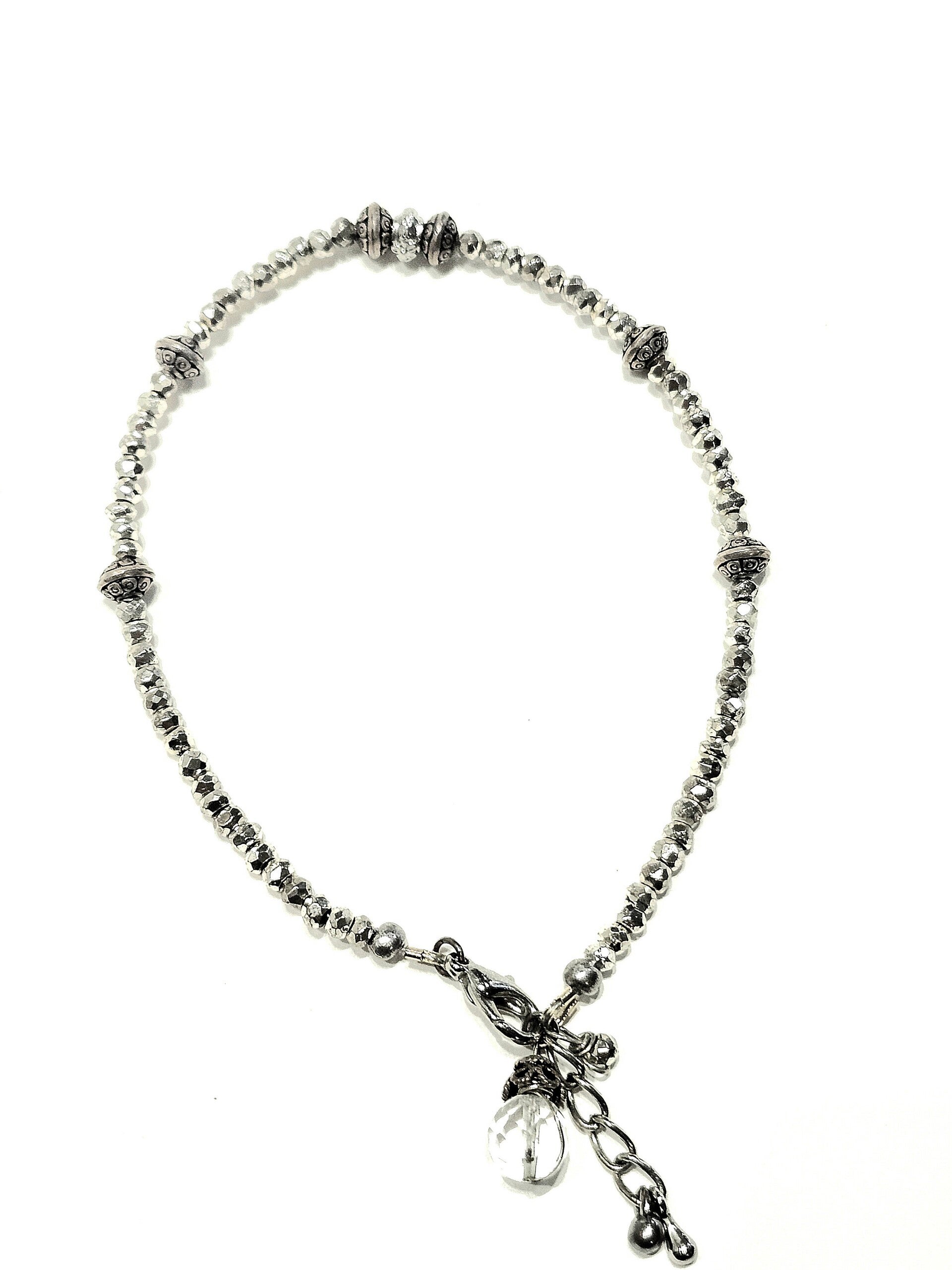 Tibetan Bead & Pyrite with Quartz Gemstone Charm Anklet