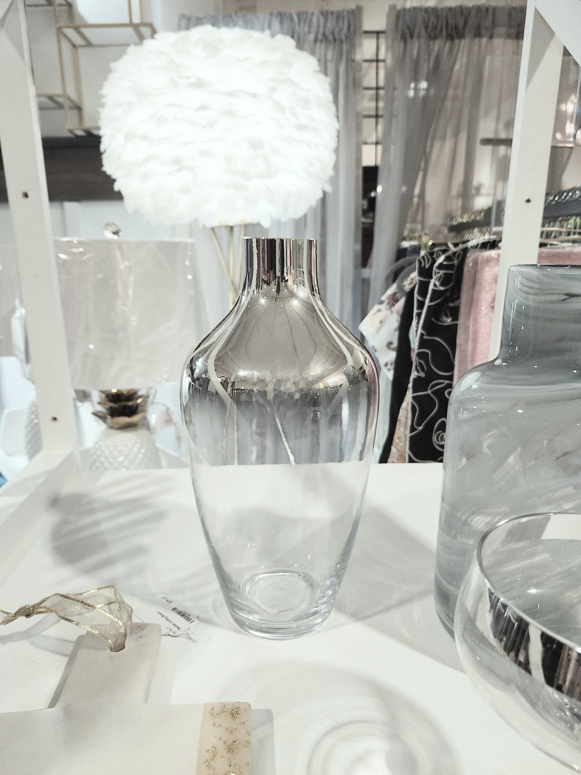 Metalic Silver & Clear Ombre Glass Vase