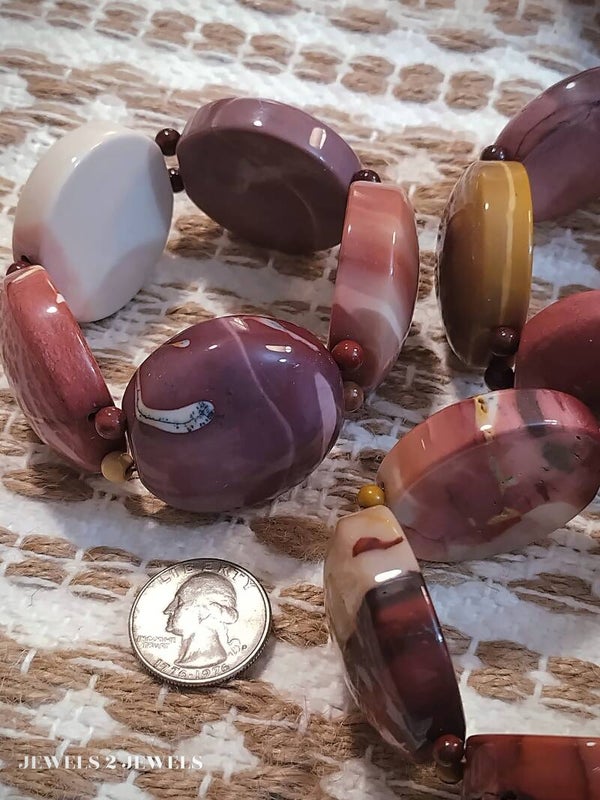 Half dome with flat back shaped Mookaite Jasper gemstone beads, heavy duty elastic string