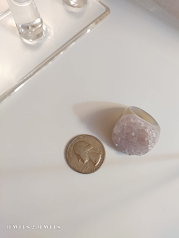 Two-tone Amethyst Agate Druzy Carved Gemstone Ring - Size 8 1/2 (119355-100)
